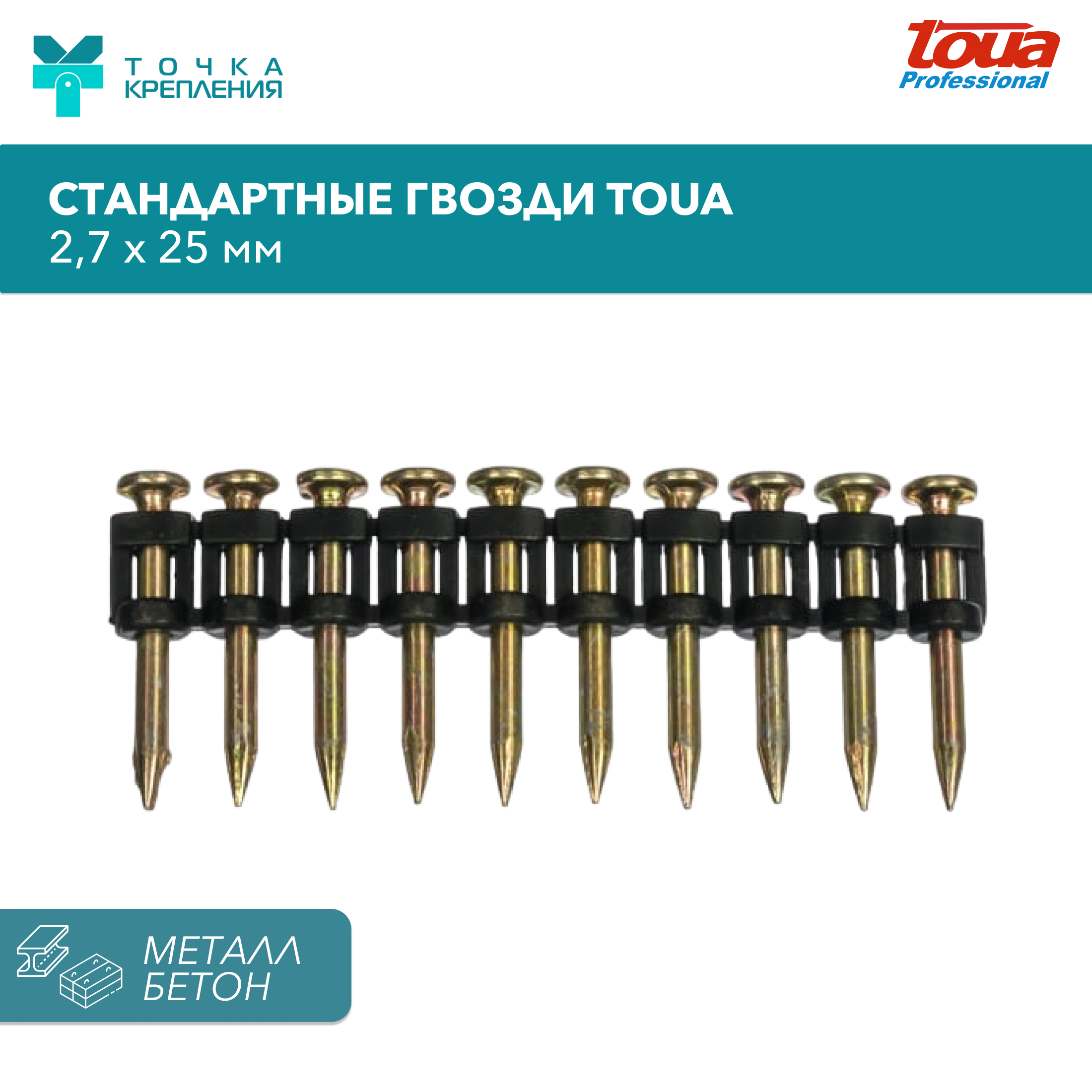 Гвозди по бетону Toua совместимы с монтажными пистолетами производства SPIT Pulsa, Aiken, MAX, Ramset, Makita, HITACHI, Trusty и других производителей.